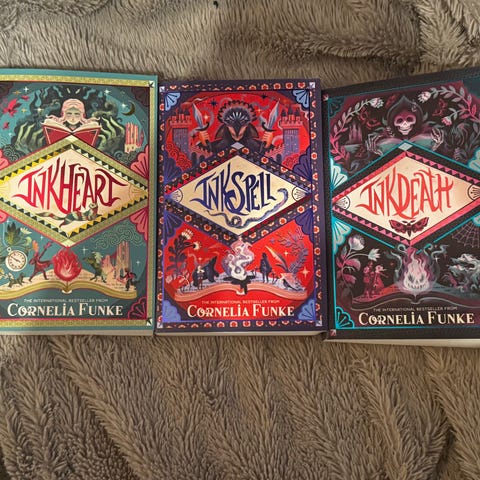 Inkspell-bøkene (hele trilogien). Nypris er 149 kr per bok, jeg selger hele settet samlet for 300 kr.