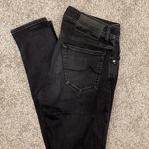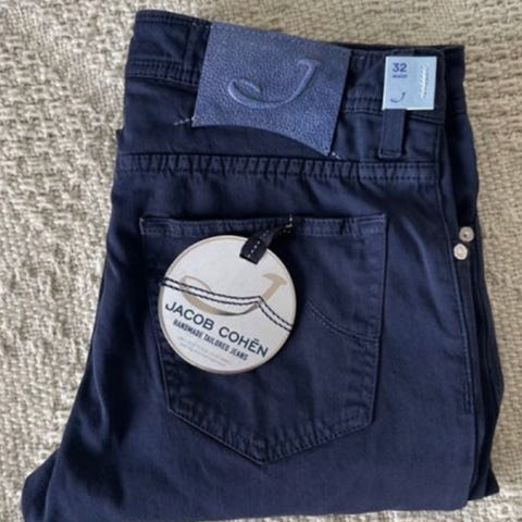 Jacob Cohen størrelse 30 622 Comfort herre jeans i blå denim. Størrelse S med midjemål W30. Jeansene har en komfortabel passform og er laget av denim materiale.