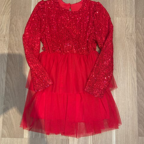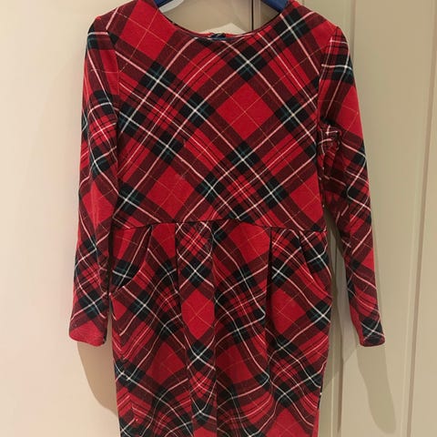 Lite brukt julekjole med skotske ruter og pee detaljer/ volanger. Str 122. Kun brukt et par ganger .