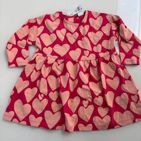 H&M Rød kjole i bomull for jente, størrelse 110. Kjolen har et rutemønster og lange ermer, egnet for hverdagsbruk.