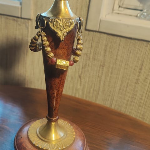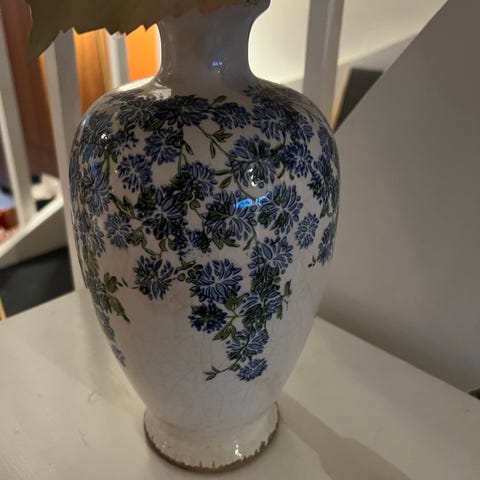 Nydelig sett med Cloisonné-vaser på treføtter selges samlet. Vet ikke alder.