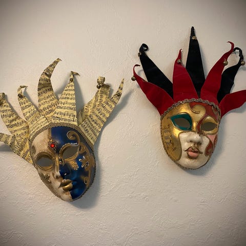 Vakker Venezia maske. Zegya Molin Maske med hatt og vifte