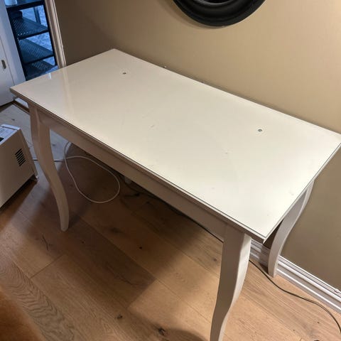 Har du en jente som ønsket seg en sminkebordet til julegave da har jeg den billig du kan få, sminkebordet er brukt men er i god stand litt bruksmerker stå på bilde legger linken fra IKEA her for mer info. https://www.ikea.com/no/no/p/brimnes-sminkebord-hvit-70290459/?utm_source=google&utm_medium=organic-shopping&utm_campaign=shopping_feed&utm_content=free_google_shopping_clicks_Bedroomfurniture