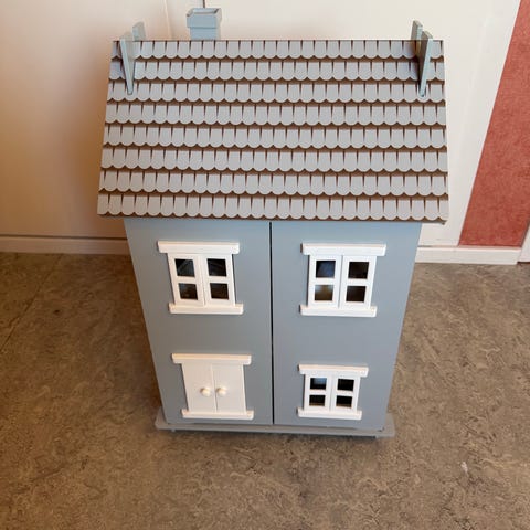 Dukkehus med møbler. Lagd av tre. Veldig pent brukt. Sender ikke, må hentes.