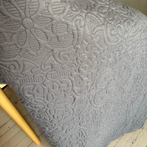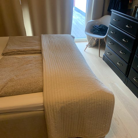 Sengeteppe med 1 pute. Farge: lys brun/mørk brun.