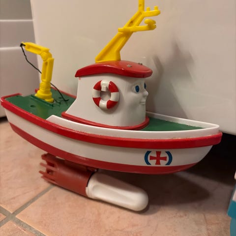 En søt badeleke med musikk fra Carlobaby, med en innebygd boblemaskin og musikkspiller. Fest badeleken til veggen ved hjelp av lekens sugepropper, tilsett litt dusjgele eller badeskum for å lage bobler og spille musikk.