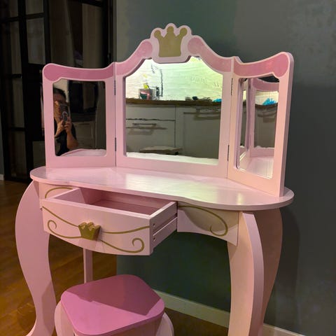 Vi rydder og selger et pent brukt sminkebord og stol i merket Kidkraft.