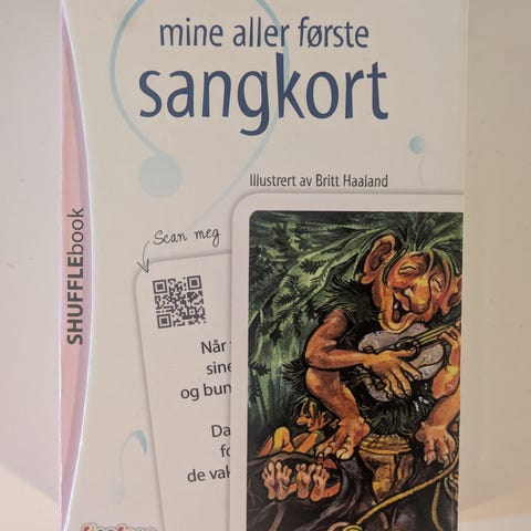 Sangkort, la barnet se på tegningen mens du synger sangteksten fra baksiden. Utviklet i Norge og trykket med vegetabilske farger. Nypris 300.