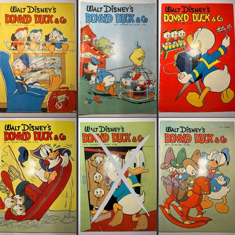 10stk Donald duck blader fra 1959 selges samlet. Noe varierende tilstand som fremgår av bildene.