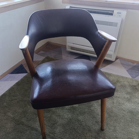 To fine gamle stoler. Merke ukjent. Tunge og solide. 250 pr stk. Selges pga plassmangel.