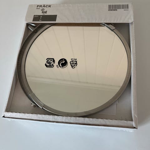 Lite, tosidig sminkespeil med forstørrelse på den ene siden.
