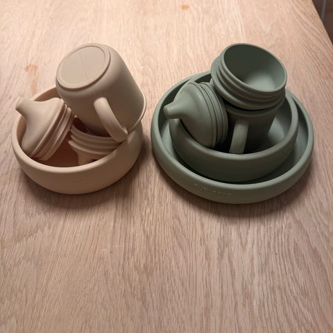 Fungerer som den skal, komplett med alle deler. Plasten har gulnet noe etter koking/ desinfisering.