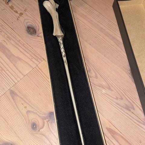 Harry Potter tryllestav laget i tre, levert i original eske med beskyttende skuminnlegg. Passer for samlere og fans av Harry Potter-serien.