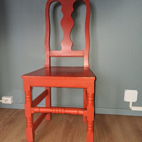 Dekorativ liten stol i barokk stil. Litt slitt, men ikke ødelagt. Bare litt litt vinglete. Trenger litt stell, hvis man vil bruke den til å sitte på.