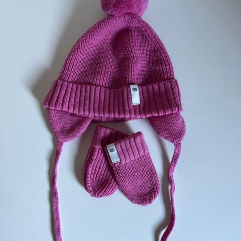 Søt og god lue og votter i ullfleece i str 43-45 i lua.