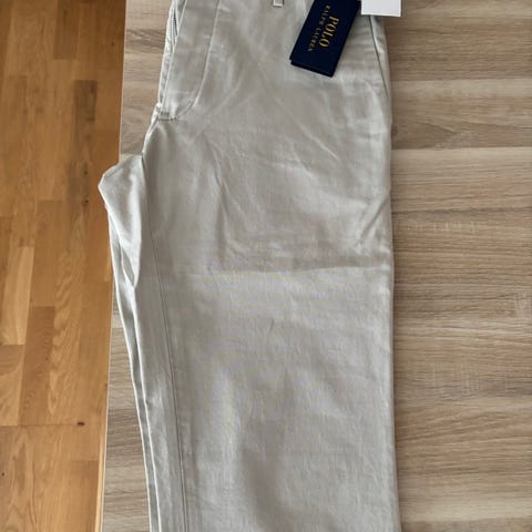 Polo Ralph Lauren Prepster Classic Chinos med stikklommer foran, to baklommer med knapper, den ene med klaff. Snøring i livet på innsiden av chinosen. Ubrukt.