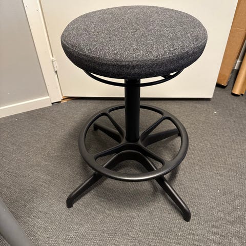 Adjustable working stool. Grey and white. The cushion is a bit discoloured but has been washed over the years. Ny pris: kr 1 895.