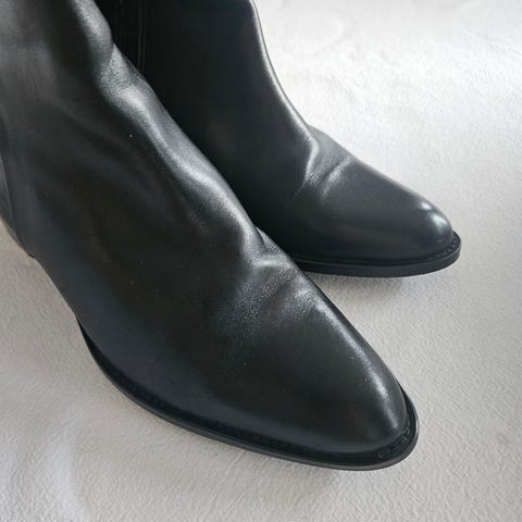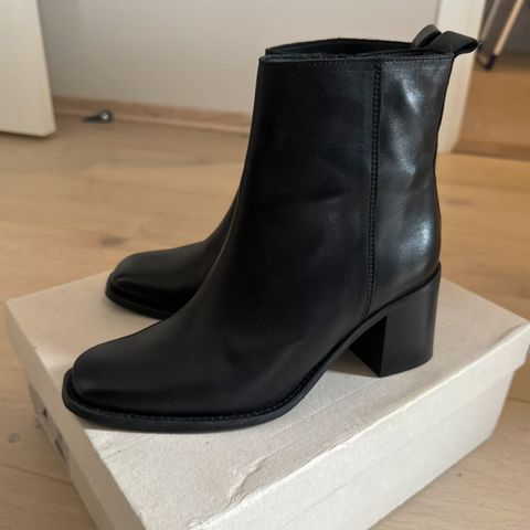 Bianco Støvler i størrelse 36, svart farge. Designet for kvinner, laget i skinnmateriale. Høye støvler med glidelås på innsiden for enkel på- og avkledning. Kun brukt et par ganger.