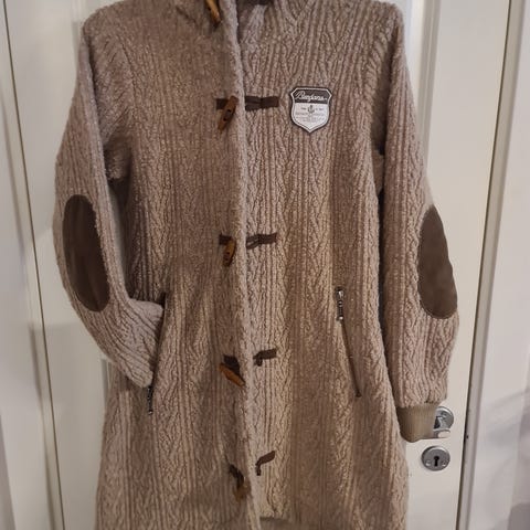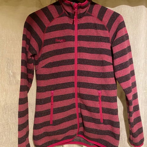 Deilig og varm ull jakke med hette, Bergans, str.M, mellomlag. Akkurat passe tykk til å være myk og bevegelig, men god og varm. Passer som mellomlag om vinteren og som ytterjakke vår, sommer og høst. Blir ekstra lun når en tar opp hetten. Gode lommer. Nypris kr.1.999,-. Lite brukt. Ingen skader som jeg kan se.