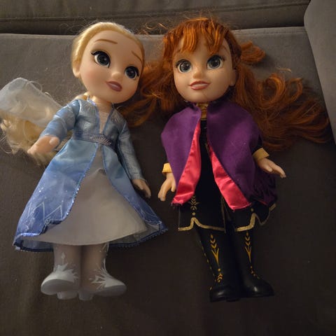 Disney Frost dukker av karakterene Anna, Elsa og Kristoff.