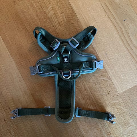 Hurtta weekend warrior beige farge. Sele med justerbare stropper og spenner for enkel tilpasning. Nesten ikke brukt. Står ikke størrelse inni, bare mål(46-60cm), men passer medium/liten hund. Brukt til min japansk spisshund på 7kg.