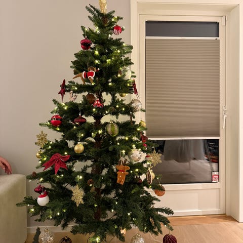 Fint juletre fra Ikea. Litt ødelagt på den øverste grenen i toppen, men ellers fin stand.