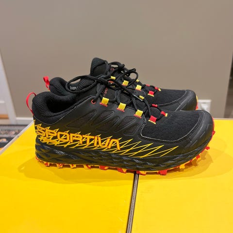 La Sportiva fottursko i størrelse 42, gul farge. Egnet for fottur med design og materialer tilpasset utendørs bruk.