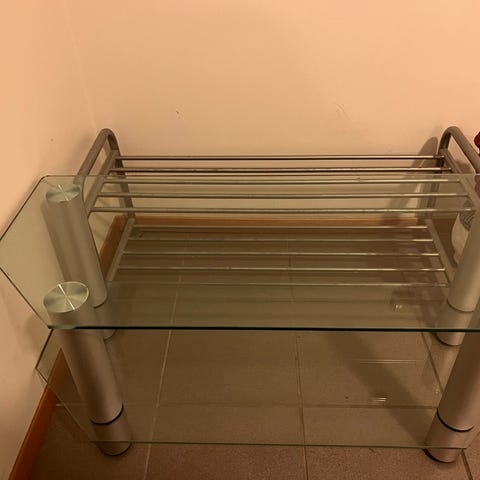 Tykk glassplate med solid understell, stabil og i god stand.