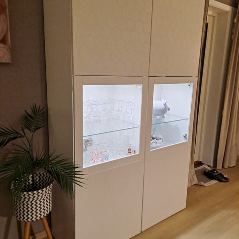 Ikea garderobestamme med hyller. Trur det er merket Bestå. Den doble stammen er 120 cm bred,