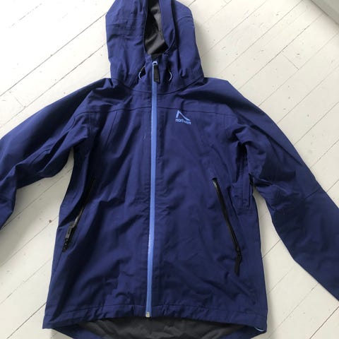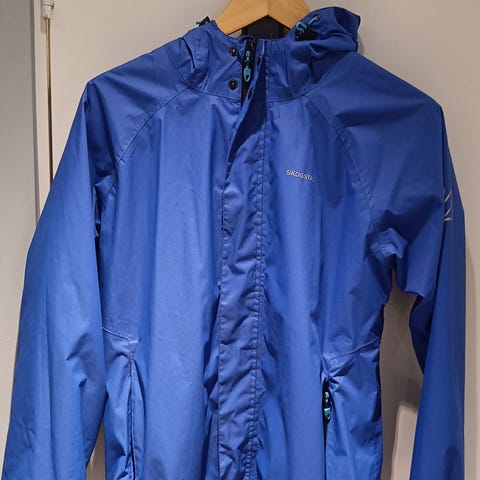 Skogstad regnjakke i type Risøy. 2-lags teknisk regnjakke. Pen blåfarge. Lite brukt- fremstår som ny.