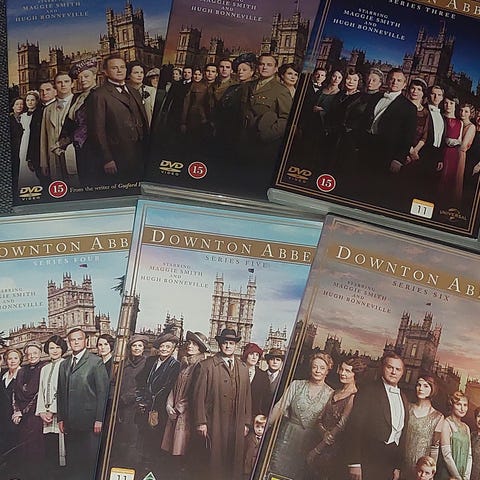 7 Dvd’er Downton Abbey sesong 1-5 til salgs.(sesong 5 i to eksemplarer.)