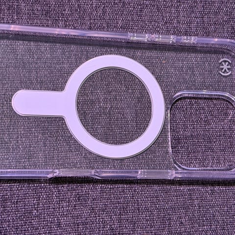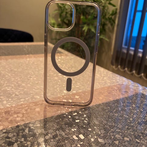 Apple telefondeksel med transparent design og integrert MagSafe-funksjon for enkel tilkobling og lading.