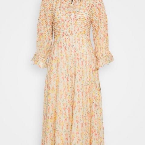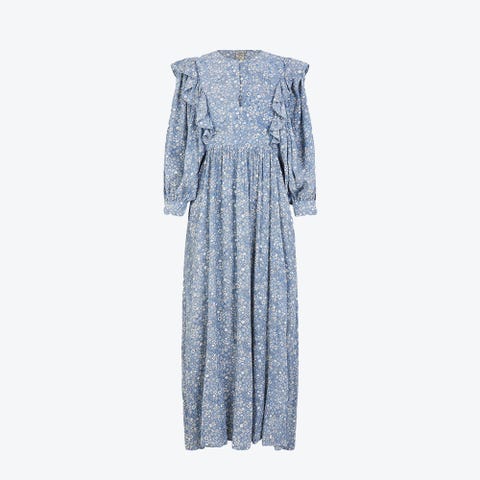 GANNI beacon maxi dress i nydelig lyseblått blomstrete mønster. Kjolen har lommer i sidene og glidelås i ryggen. 70% bomull, 30% silke. Str 36. Sjelden sjanse, denne kjolen i dette nydelige stoffet er ikke ofte å finne til salgs. Selges med tungt hjerte for å frigjøre plass i et overfylt skap. Passer til alle anledninger, kan dresses opp og ned.