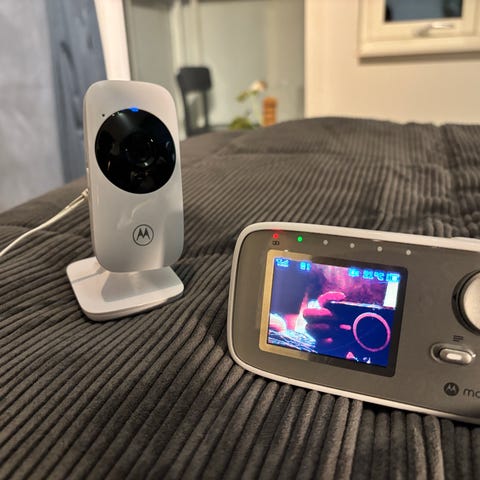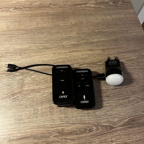 Lyset på sender blinker noen ganger, ellers skal den være helt fin. Vi har vært veldig fornøyde. Har stort sett brukt dem med strøm på, så er usikker på batteritiden.