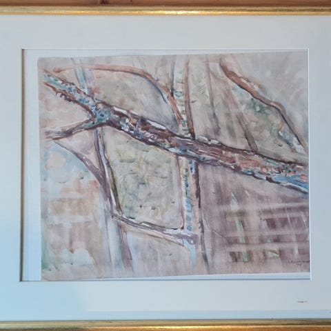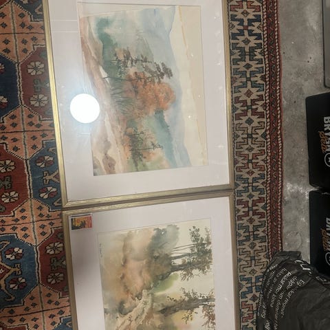 Bildene er innrammet med hvit passepartout og svart ramme. Det største viser utsikt over Oslo fra Voksenåsen