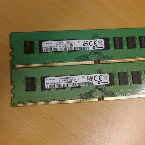 Selger et lite brukt par med 8GB ram-brikker fra Samsung. Disse har stått i en prebuilt-PC fra HP som for det meste er blitt brukt til gaming.