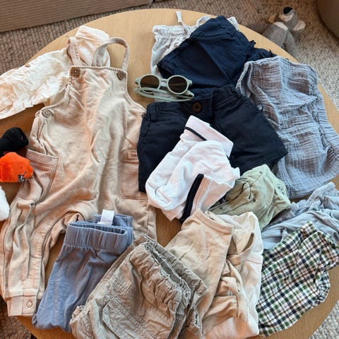 Fin liten klespakke med noen body i 62 og 68 (lang og kort arm) og en sparkedress fra newbie i størrelse 68.