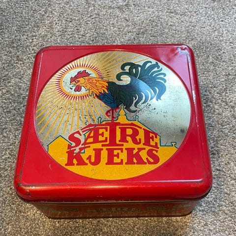 Veldig gammel kakeboks fra kjeksfabrikk Sætre