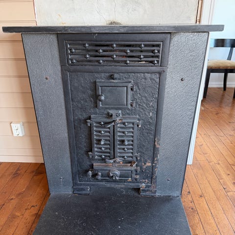 Antikk Vedovn i støpejern med dekorative mønstre