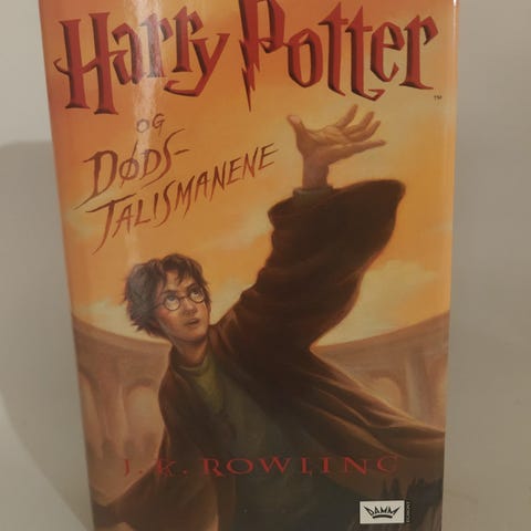 Selger Harry Potter og Dødstalismanene i innbundet norsk utgave.