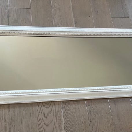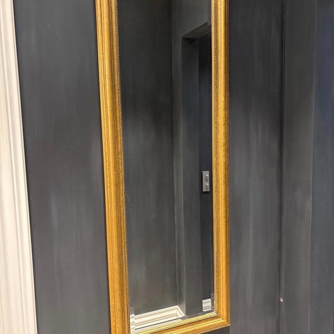 Speilet er i god stand, med noe normal patina og små ujevnheter som gir karakter og et klassisk uttrykk. Passer godt i gang, soverom, på hytte eller som et stemningsfullt innslag i et rustikt eller vintagepreget interiør.