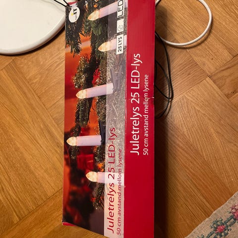 Glassklokke juledekorasjon med hjerter og LED-lys, leveres med boks. Nissefigur i rød og hvit farge med lue og skjegg. LED-lyskjede med rød fløyelsbånd til dekorasjon. Passer til jul.