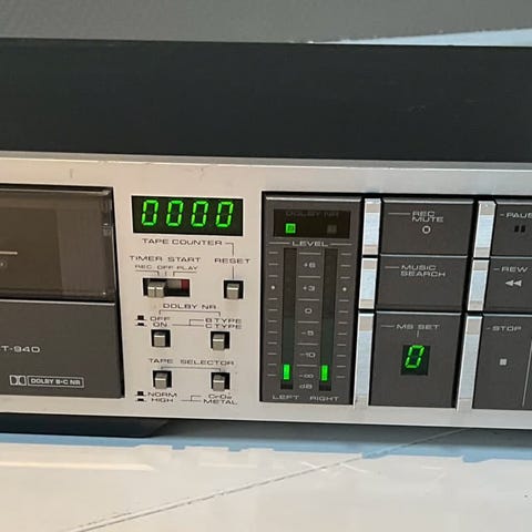 Akai spolebåndopptaker i god stand, spoler tilbake i begge retninger, spiller av, men jeg er ikke sikker på opptaket.