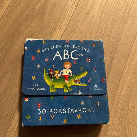 ABC Bokstavkort Spill med koffert inneholder 30 bokstavkort med illustrasjoner. Kortene er laget for å lære bokstaver, rim og sangtekster. Settet leveres i en blå koffert med håndtak for enkel oppbevaring og transport.