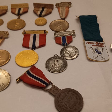 2 sølv merker. Halden skiklubb. 100., for begge.