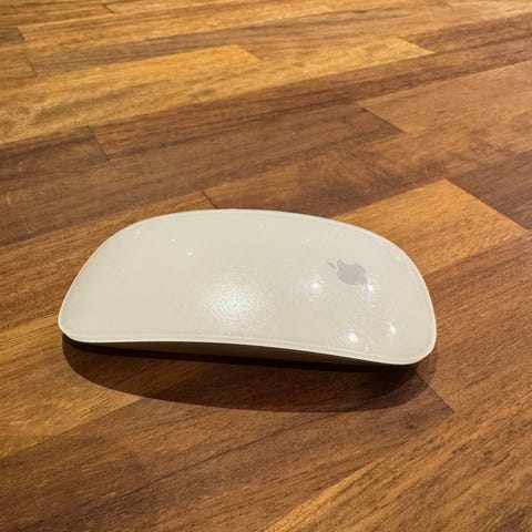 Apple Magic Mouse med svart farge. Usikker på batterilevetid, men den lader.