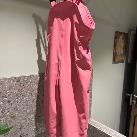 Pent brukt Tretorn regnsett til barn i klar gul farge. Består av regnjakke med hette og regnbukse med seler. Mykt fôr på innsiden av jakken, perfekt for våte og kjølige dager i barnehage/skole.