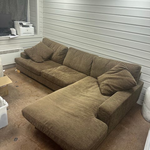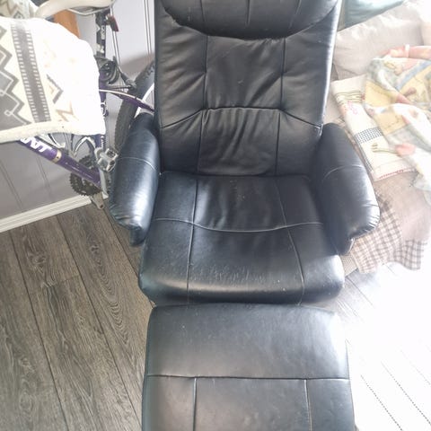 lenestolen i Imitert skinn, god å sitte på, fungerer som skal