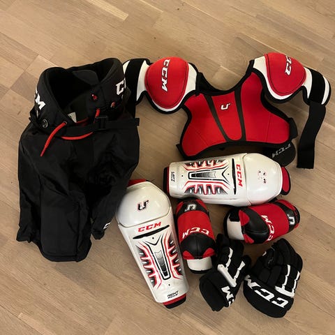 Fyll hockeysett vapor XTend Bauer: Hansker, Skulderbeskyttelse, albuebeskyttelse, leggskinn og bukse. Justerbare størrelse: til barn mellom 3 og ni år. Kjøpt ny. Brukt kun en gang.
