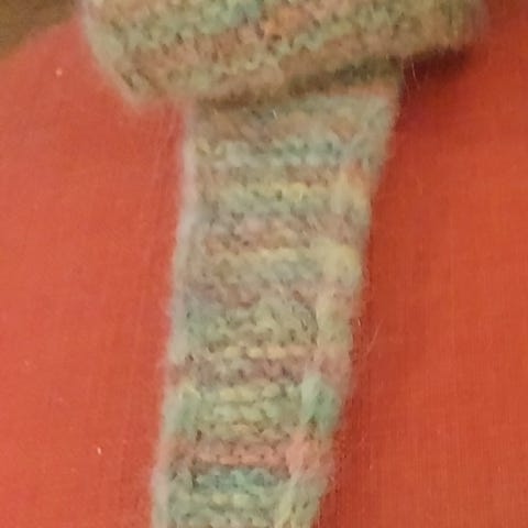 Maskin strikket langt skjerf ca 250 cm langt og 13 cm bred så når det kommer kuldegrader så kan man legge dette skjerfet noen ganger rundt😂
